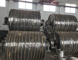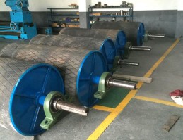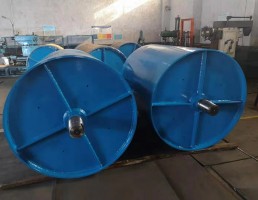 傳動滾筒鋼接盤與筒體用V型焊接坡口焊接,重型滾筒的接盤由高強度球鐵鑄鋼制成,接盤軸套等焊接坡口均為機加工,焊接后做消除應力處理并進行焊縫進行100℅無損傷和25℅X射線拍片檢查,組裝后進行靜平衡試驗,精度達GB/T9239.1-2006中G40標準。